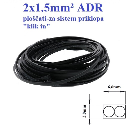 Flat cable 2x1.5mm² ADR 24v, for CLICK IN system. Price is for 100m