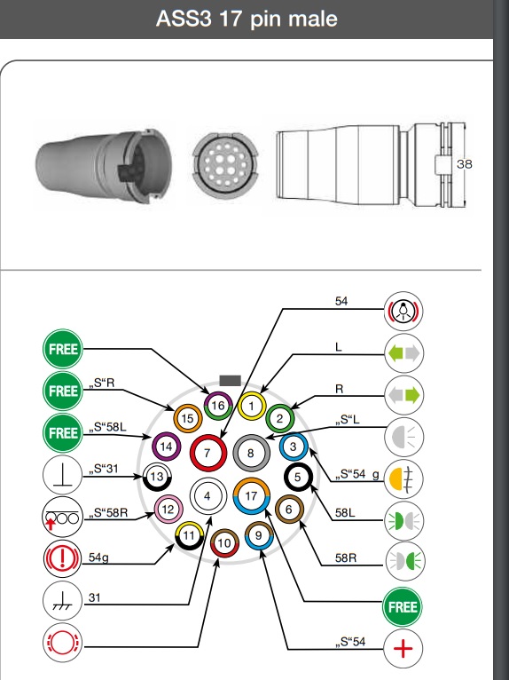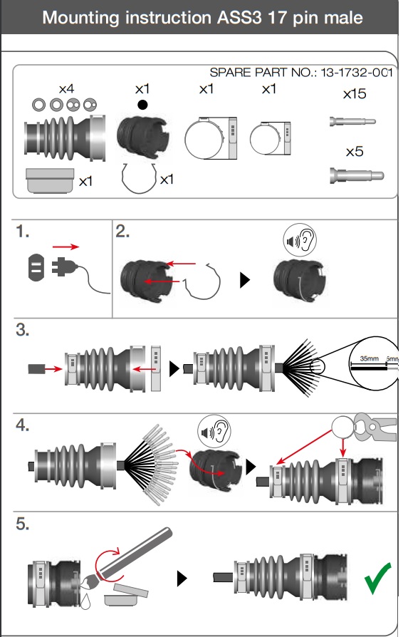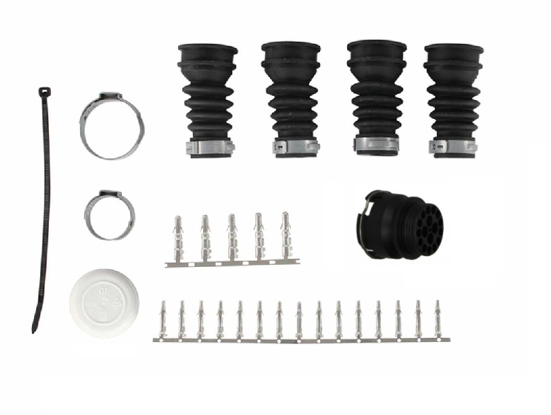 17 way male water resistant connector set Aspock type ASS3 with pins and various seals for cable exits and grease.