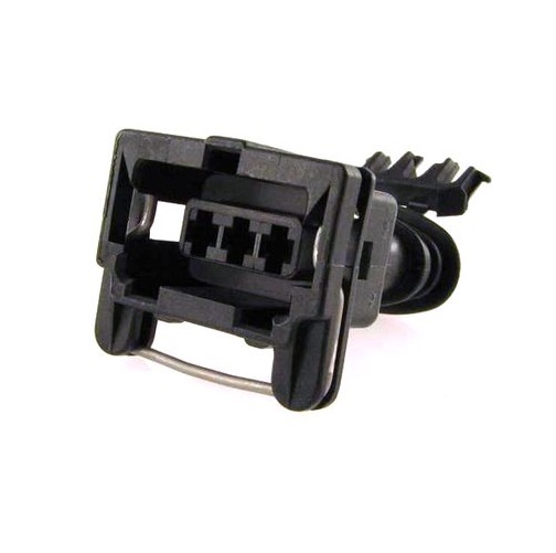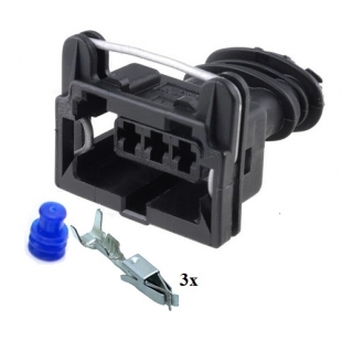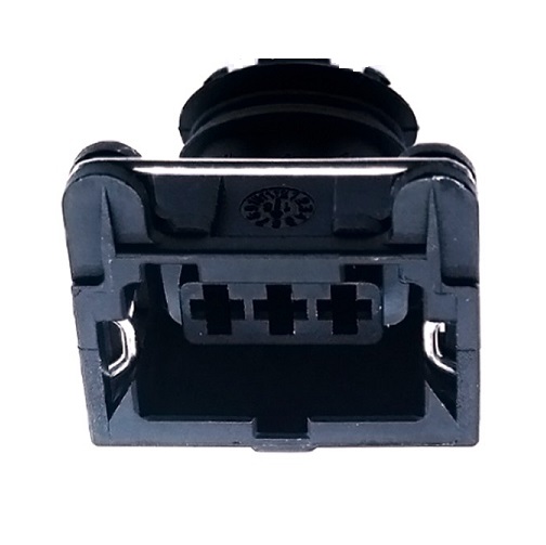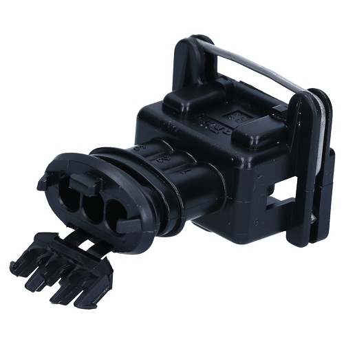 3 pol female AMP JPT connector with contacts and seals. Lock is on the top.