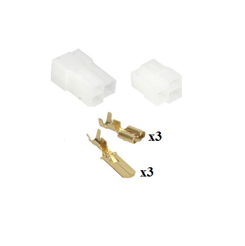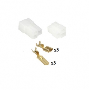 Univerzal 3 pol connector set with female and male housing and special contacts. As it is not waterproof it is recommended to be used in dry environment- for example: for wiring in car interior under the dash...