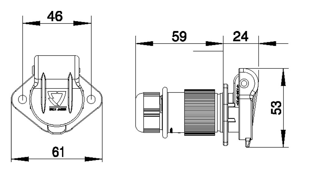 3 pin female socket, 6-24v, with cable gland, EJ