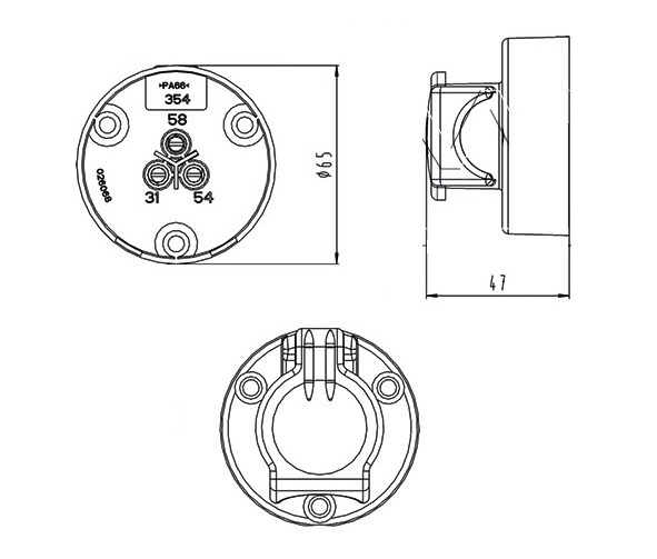 3 pin socket 6-24V, fi 65mm, screw contacts, style7pold, EJH