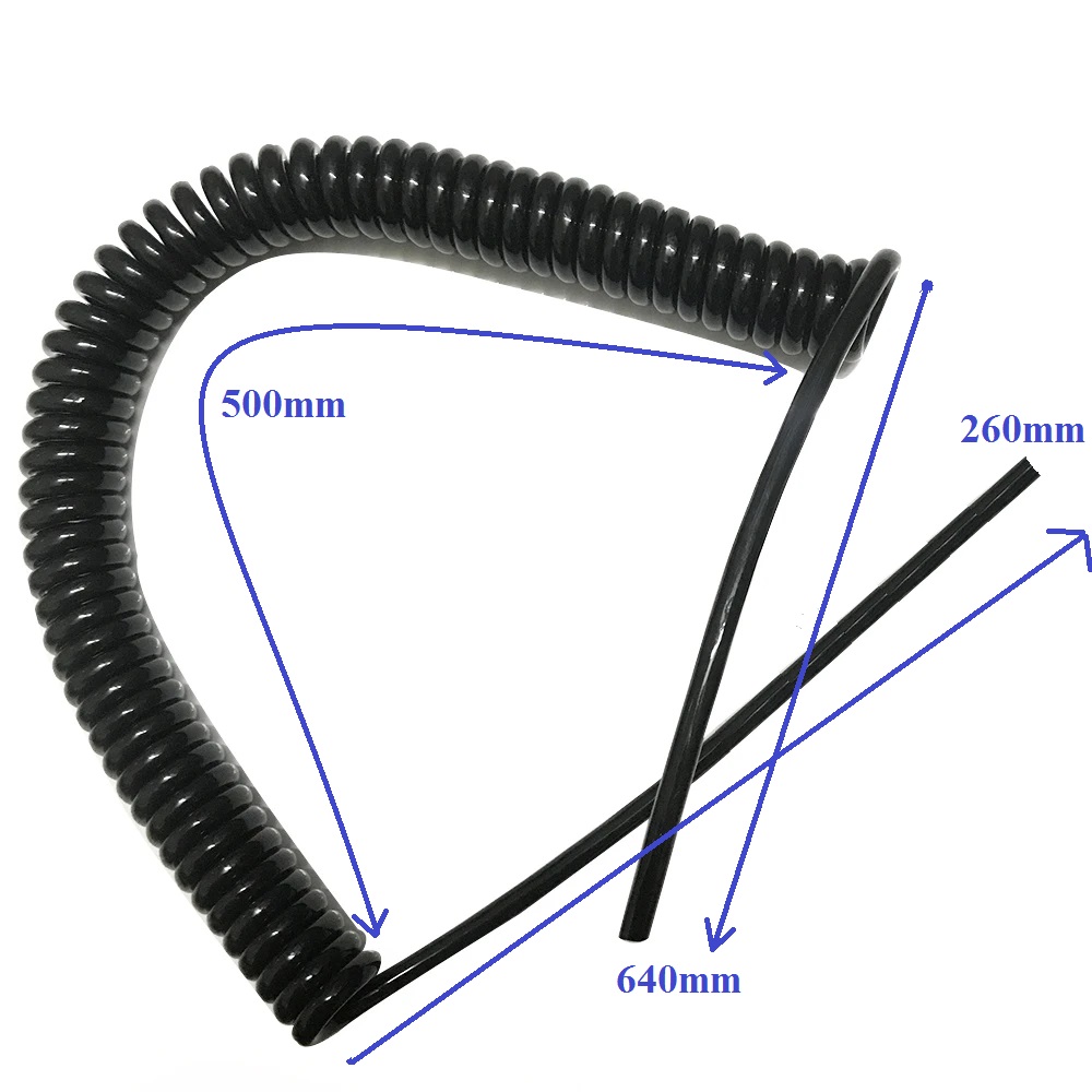 The length of the spiral part is 500mm+straight ends 260mm+640mm: Total length unstretched is 1400mm.