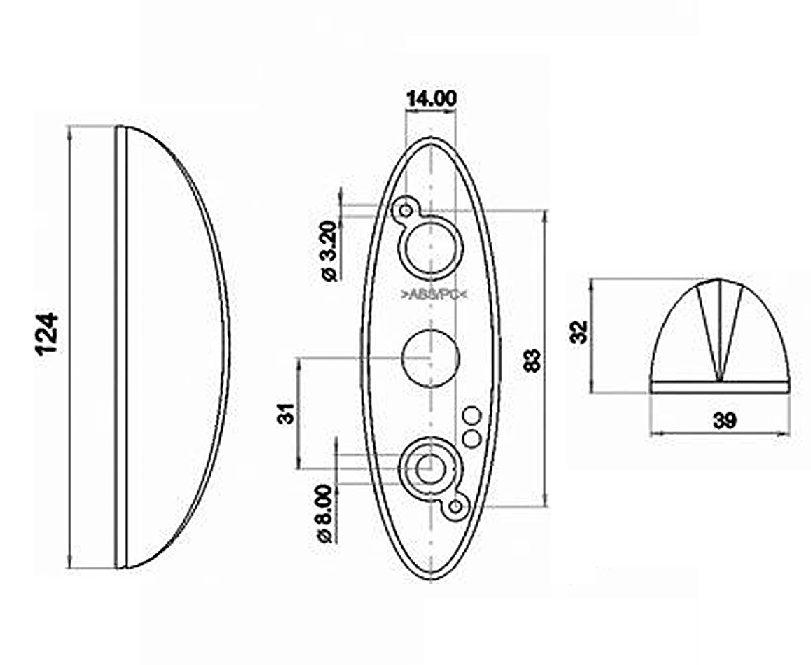 Measures (length, height, width) : 124x14x32mm Bolt to bolt distance 84mm-diagonal. More details on picture.