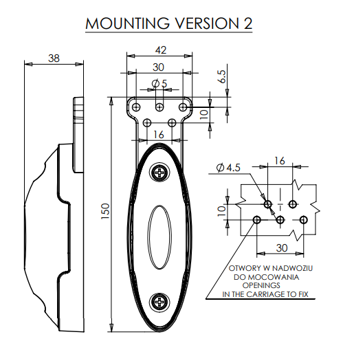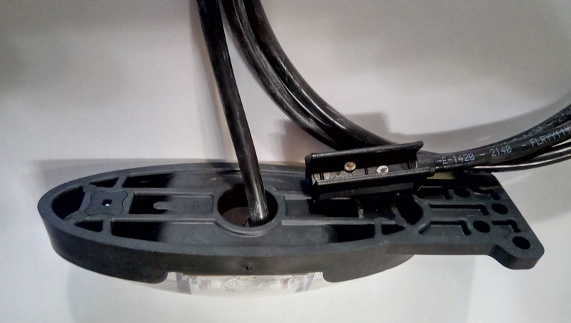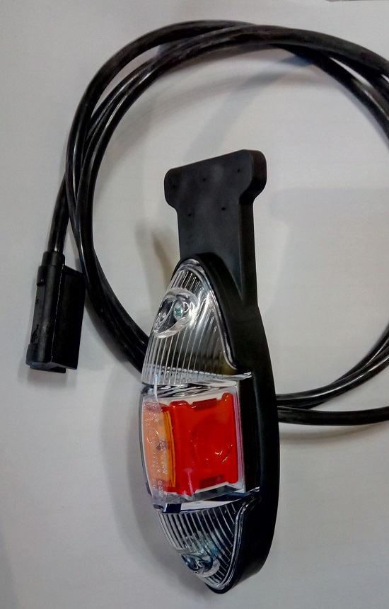 Hi quality end outline marker on flat holder, with white, red and yellow LED illumination. Easy and efficient connection with cable length 1.5m and CLICK IN connector for flat cable 2x1.5mm.