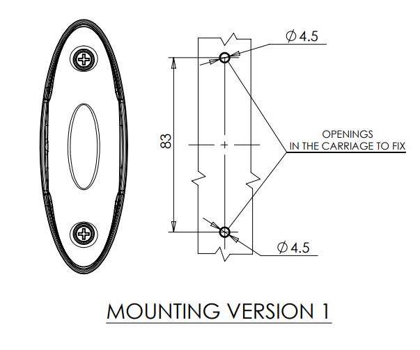 End outline marker lamp LED 12-24v, flat holder, cable 1.5m+CLICK IN, LEFT= RIGHT, W107ECO