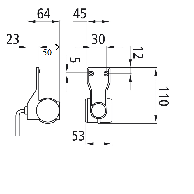 End outline marker lamp LED MINI-50mm, hang version, 12-24v, cable 1m, LEFT SIDE, ASP