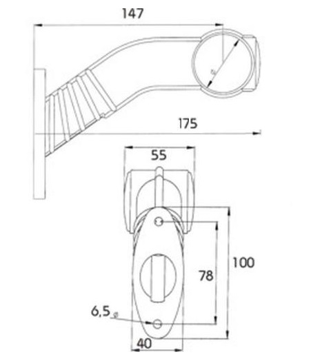 Led marker integrated into standard length holder. With white+red+amber LED illumination. Fits left side. Suitablle for large trucks and trailers. Cable exit 1.5m