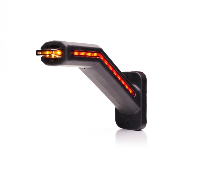 Special LED end outline marker lamp with integrated static direction indicator. When indicator is on ALL functions will change the colour to yellow and start to flash. Fits left side.