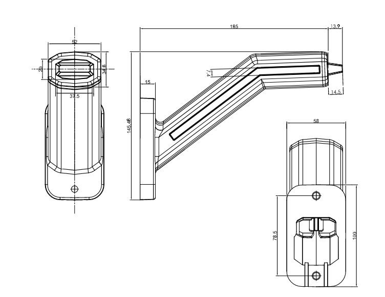 Special LED end outline marker lamp with integrated static direction indicator. When indicator is on ALL functions will change the colour to yellow and start to flash. Fits right side.