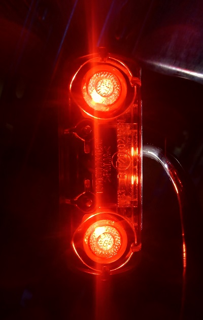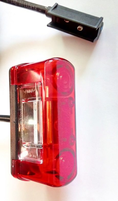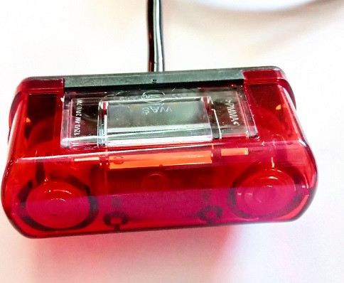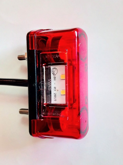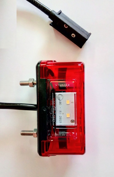 Universal small white lamp for number plate illumination with red cover which works also as red marker lamp.