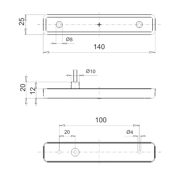 Amber side marker LED, 12v, 140x25mm, bolt to bolt 100mm, cable 300mm, Jokon