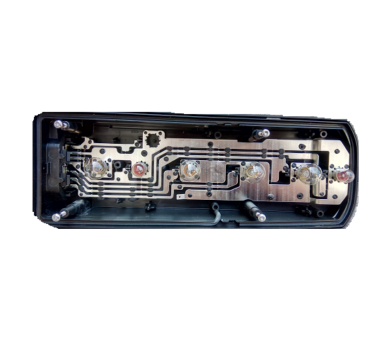 Used original replacement housing for rear right lamp for Mercedes Actros MP4, MP5 (A0035440803). Complete with bulbs and inner plastic parts. Just without lens.