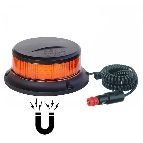Warning beacon LED amber, magnet+screw, slim, 12-24v, spiral cable 1m, S