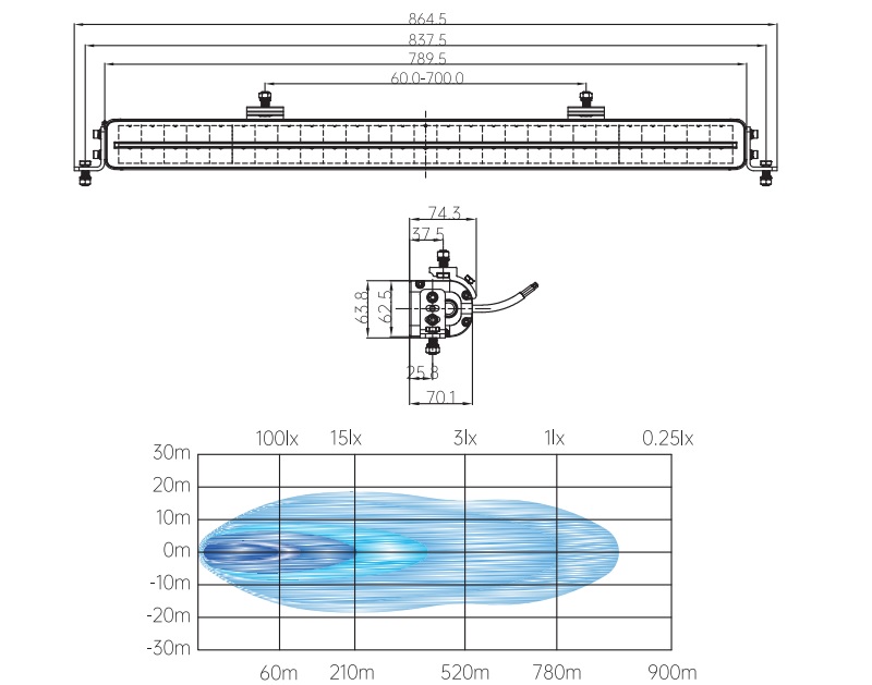 Measures (length x height x depth:  790x63x70, other measures at picture