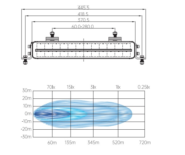 14.6 inch LED driving light bar with ECE approved homologation has double rows in reflector facing led design technology for effective 9000 real lumens. Its high beam pattern is cca 40m wide and 520m long. With position lamp in white or amber colour this lamp is not just powerful but also modern and stylish.