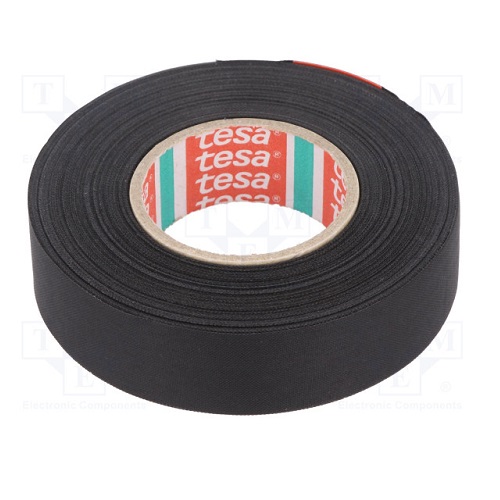 Tekstilni trak črne barve iz tkanine PET in z lepilom na osnovi kavčuka se uporablja na področju avtoelektrike za zaščito in povijanje kablov v snope. Se ročno trga in je odporen na temperature od -40 do 125°C (3000h). Širina 19mm. Dolžina 25m. Blagovna znamka: TESA