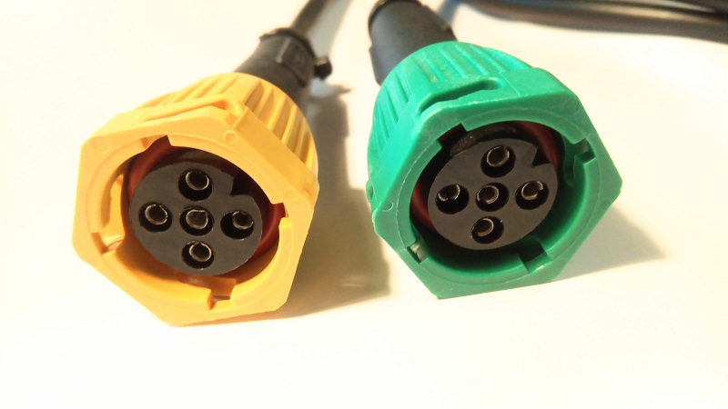 Rumeni konektor ima kabel 5x0.75mm (za levo stran). + dodatni izhod ploščati kabel DC 2x0.75mm dolžine 0.5m)