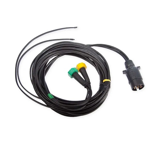 Kabel dolžine 5 metrov za priklop zadnjih stop luči z okroglimi 5 polnimi bajonet konektorji z dodatnimi izhodi 0.5 metra, ki jih lahko uporabimo za priklop stranskih, gabarithnih lučk. Vtikač je 7 polni.