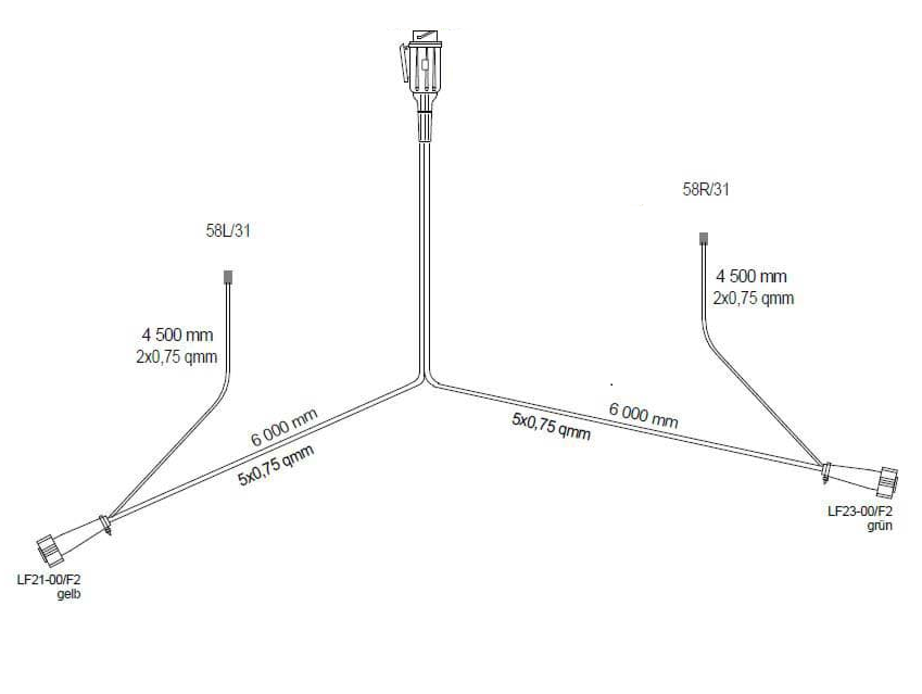 KABEL za prikolico 6M s 13P vtikačem in 2x 5P bajonet konektorji+dodatni izhodi 4.5m, A