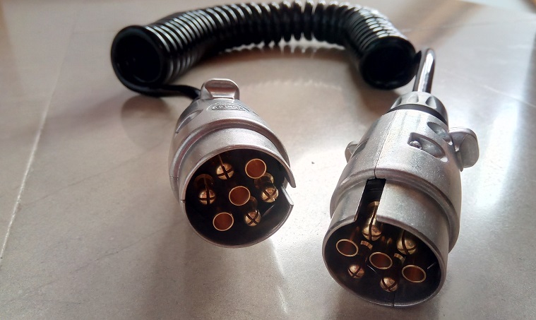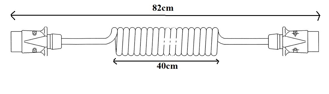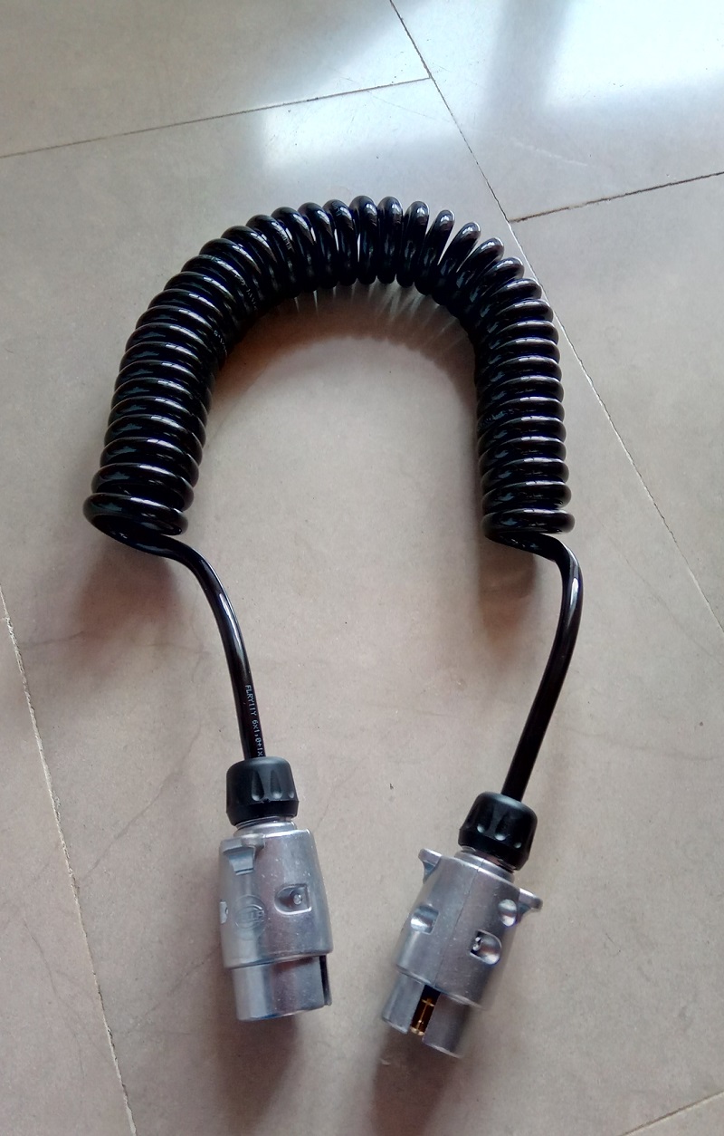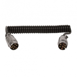 Spiralni kabel, ki ima dva enaka 7 polni vtikača z uvodnicami je primeren za 12v sisteme. Dolžina neraztegnjenega: 0.8m, maksimalna dolžina popolnoma raztegnjenega: 3m. Priporočljivo za premostitev dolžine od cca 1m do cca 1.6m.