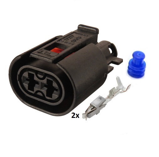 2 polni ženski vodoodporen konektor s kontakti in tesnili. Primeren za bočne luči 60x60mm za tovorna vozila MAN in za določene komponente VW, Audi, Seat, Škoda.