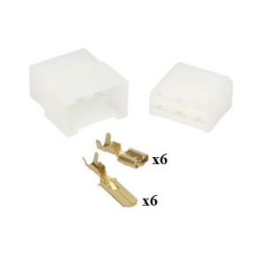 Univerzalni 6 polni konektor s kabel čevlji z jezičkom, ki se zaklenejo v ohišje. Ker konektor ni vodotesen je primeren za uporabo na suhem- npr. v notranjosti avtomobilov in ostalih vozil, delovnih strojev...