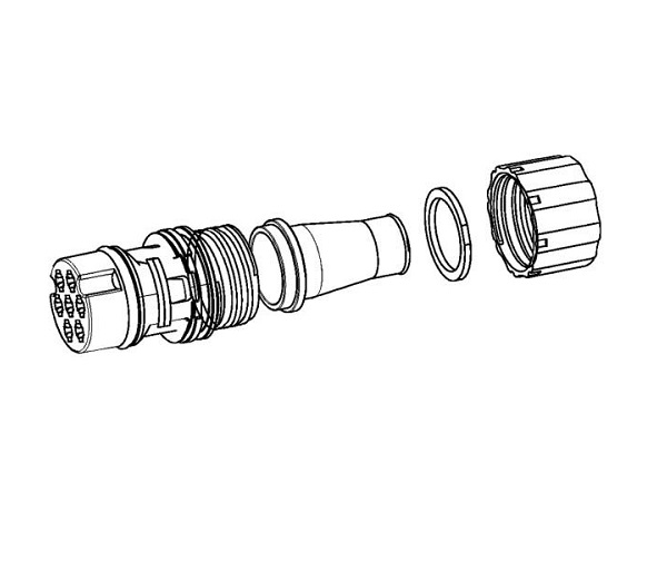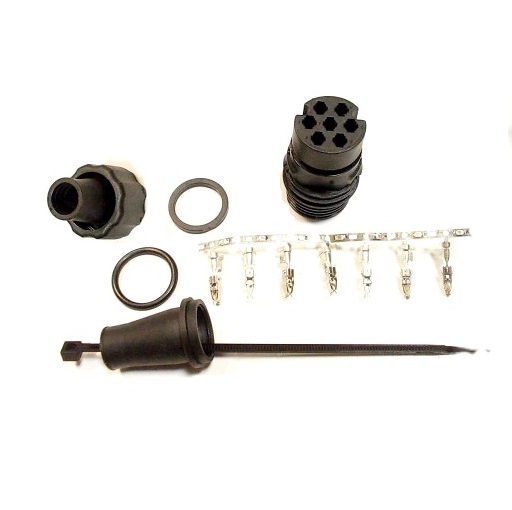 7 polni ženski vodoodporen konektor s kontakti in tesnili je primeren za priklop določenih modelov zadnjih luči proizvajalca Hella. Ustrezen za levo in desno stran ( rumen ali moder konektor na luči). Priporočljiv kabel 7x1.5mm.