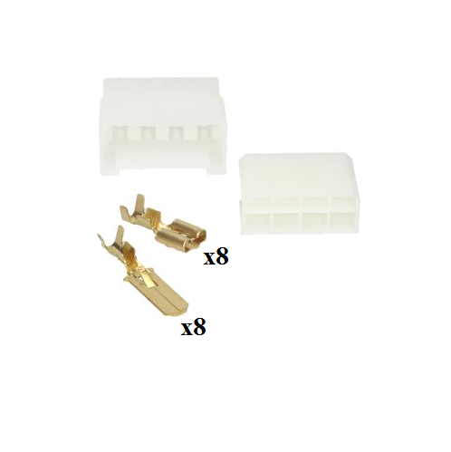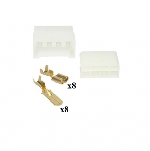 Univerzalni 8 polni konektor s kabel čevlji z jezičkom, ki se zaklenejo v ohišje. Ker konektor ni vodotesen je primeren za uporabo na suhem- npr. v notranjosti avtomobilov in ostalih vozil, delovnih strojev...
