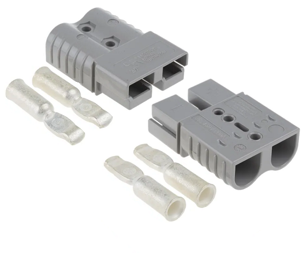 Dvopolni konektor primeren za vodnike do 70mm² in tokove do 350 amperov. V setu so štirje kontakti in "moški in ženski" del ohišja, ki sta dejansko popolnoma enaka samo pri montaži se enega obrne. Enostavna demontaža kontaktov z izvijačem.
