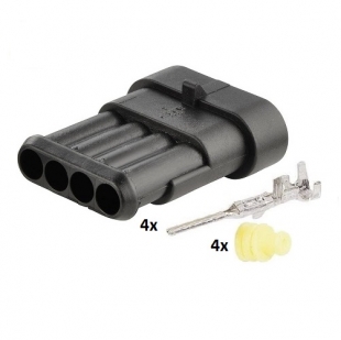 4 polni moški vodotesni konektor superseal AMP 1.5 s kontakti (4x) in tesnilom (4x).