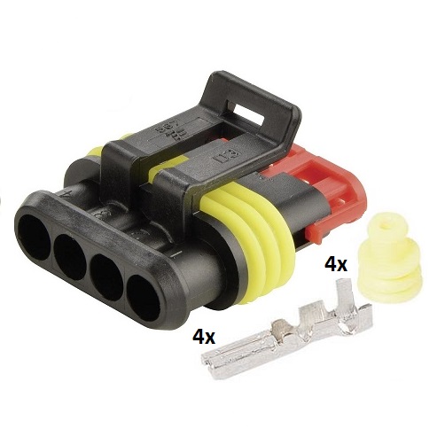 4 polni ženski vodotesni konektor superseal AMP 1.5 s kontakti (4x) in tesnilom (4x).