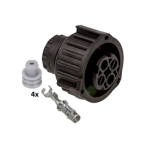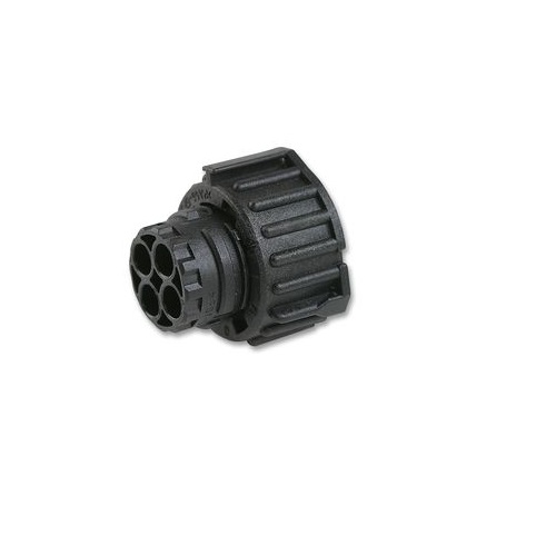 4 polni ženski vodotesen konektor IP69K s kontakti za žice preseka 0.5-1mm in tesnila: 2x belo+ 2x sivo+2x slepo-zamašek) ter dodatno zaščito.