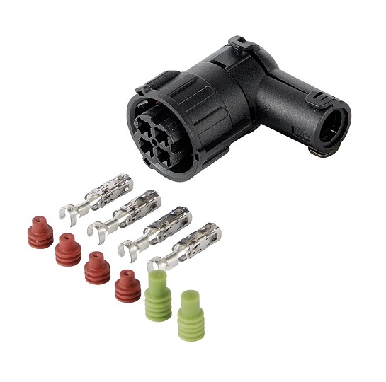 4 polni vodotesen konektor za priklop raznih senzorjev. Priloženi dve slepi tesnili tako, da ga lahko uporabimo tudi kot 2 ali 3 polni konektor.