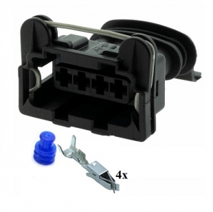4 polni ženski AMP JPT konektor s kontakti in tesnili. Odklep na zgornjem delu.