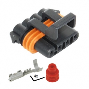 4 polni ženski konektor s kontakti in tesnili za razne komponente motociklov, osebnih in tovornih vozil.