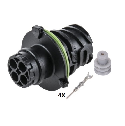 4 polni moški vodotesen konektor IP69K s kontakti za žice preseka 0.5-1mm in tesnili ter dodatno zaščito.