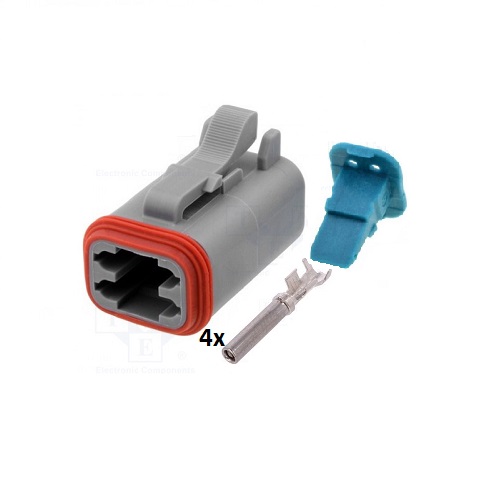 4 polni ženski vodotesni konektor tipa Deutsch s kontakti (4x) in zaklepom (1x)