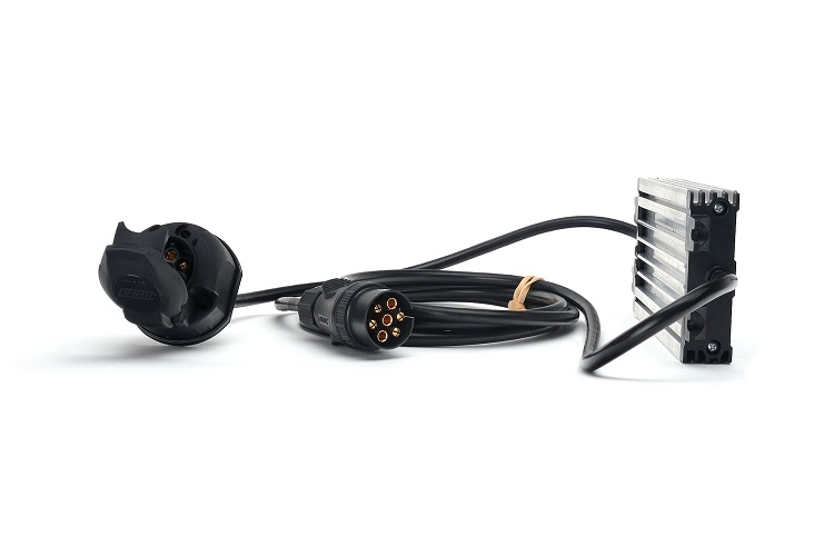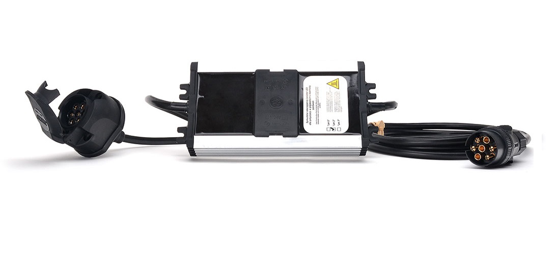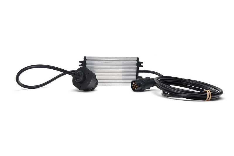 Kontrolna enota ima 7 polni vtikač s kablom dolžine 2,5 metra in 7 polno vtičnico na kablu dolžine 0,5 metra, kar nam omogoča, da enostavno priklopimo 7 polni vtikač na vtičnico avtomobila, enoto montiramo na prikolico in vtičnico priključimo na vtikač prikolice. Enoto je potrebno montirati na mesto, kjer bo lahko dobro odvajala toploto in ne bo v stiku s potencialno vnetljivimi snovmi, ker se lahko med uporabo močno segreje ( do 100°C).
