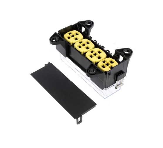 Funkcije: modularni nosilec za 4 mini releje z zaščitnim pokrovom