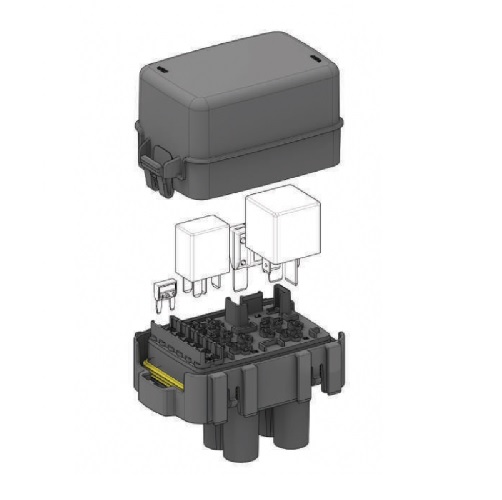 Set vsebuje ohišje, pokrov, nosilce in kabel čevlje s tesnili. Releji in varovalke niso priloženi.