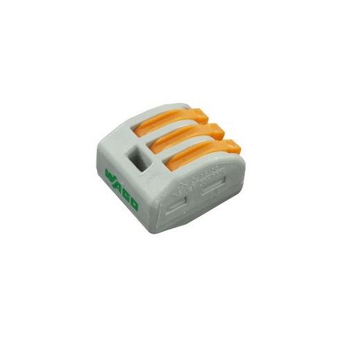Univerzalna hitra inštalacijska sponka za razdelitev/spajanje enega vodnika na tri. Uporabna za trde in mehke vodnike-žice.