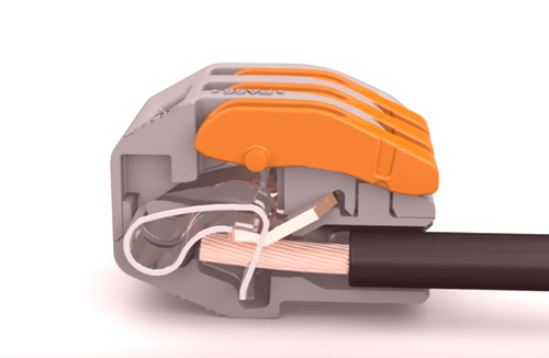 3: vstavimo vodnike in ročice zapremo v izhodiščni položaj. Kvaliteten spoj zagotovljen.