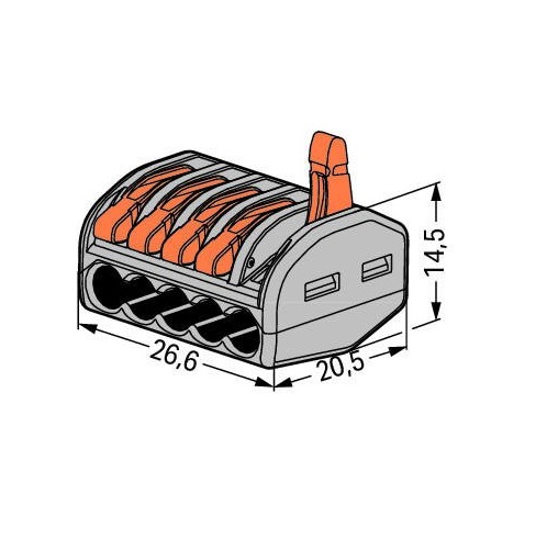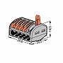 Univerzalna hitra inštalacijska sponka za razdelitev/spajanje enega vodnika na pet. Uporabna za trde in mehke vodnike-žice.