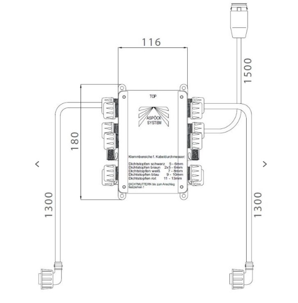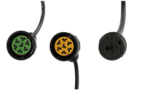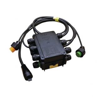 Elektro razdelilna omarica primerna za večja tovorna vozila in prikolice z že pripravljenimi izhodi za priklop zadnjih štop luč(2x 1300mm kabel s konektorjem 7P ass2) in glavnim dovodnim kablom s 17 polnim konektorjem.