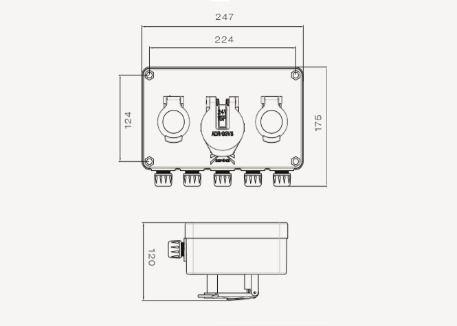 Razdelilna doza za prikolico 1x15+2x7, 240x140mm, uvodnice spodaj, Aspock