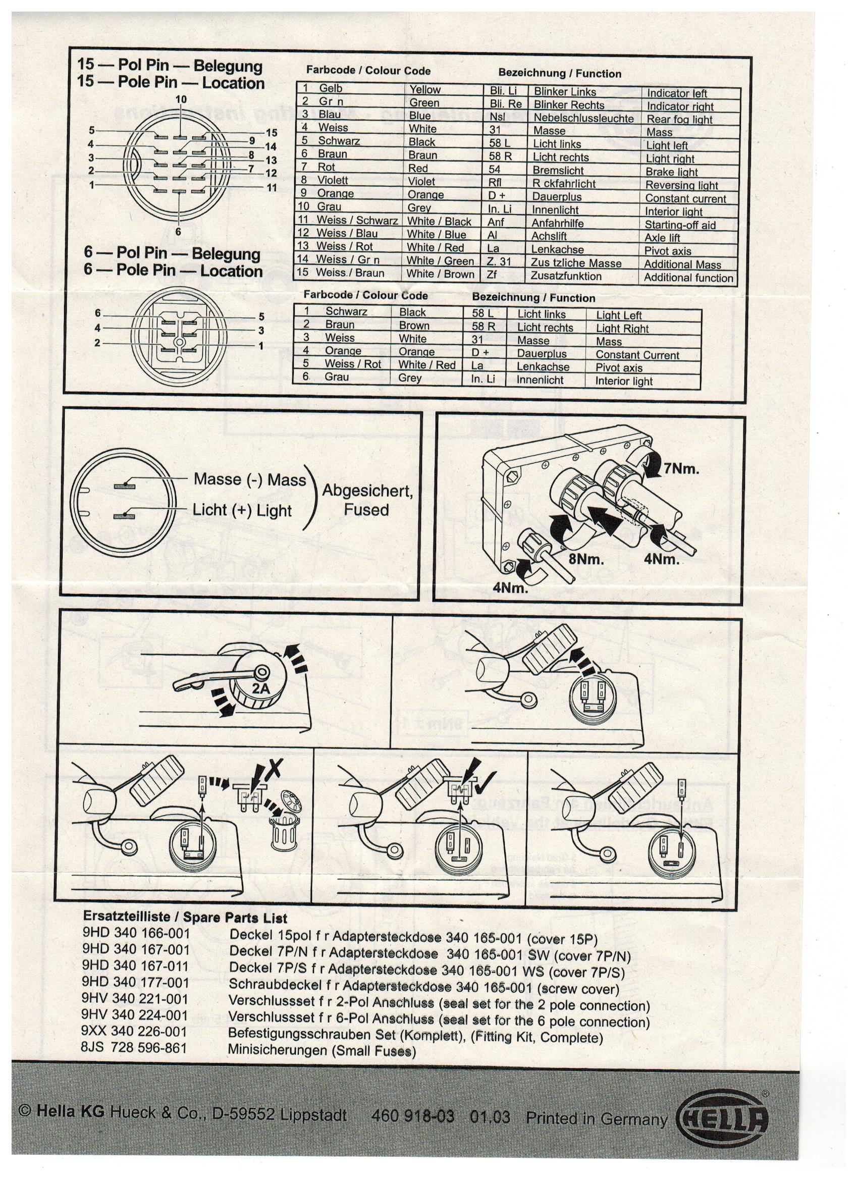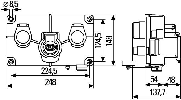Razdelilna doza za prikolico 1x15+2x7, 245x145mm, uvodnice zadaj, Hella