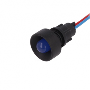 Plastična LED kontrolna lučka modre barve za odprtino fi 13mm. Deluje na 12 in 24v.