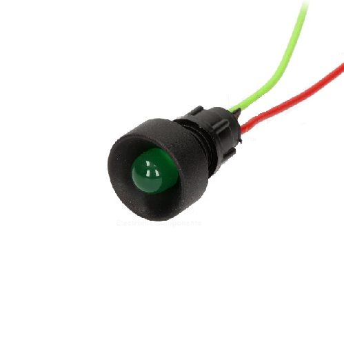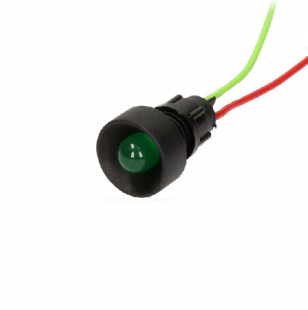 Plastična LED kontrolna lučka zelene barve za odprtino fi 13mm. Deluje na 12 in 24v.