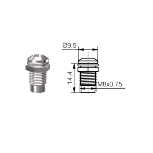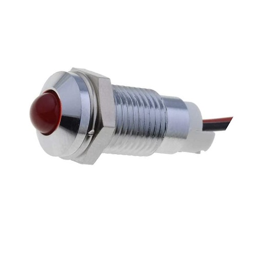 Ohišje iz kromirane medenine za LED kontrolno lučko s plastičnim nosilcem diode za montažo v odprtino fi 8mm. Led dioda FI 5mm, 12v na voljo v rumeni, zeleni ali rdeči barvi( kot 60 stopinj, 12v, 10-15mA) Izbiro diode napišite v opombo. Mere ohišja na sliki.